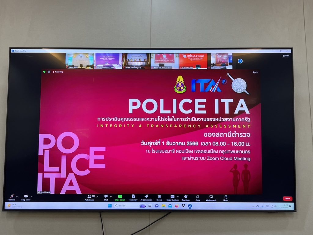 🔹เข้าร่วมกิจกรรมชี้แจงการประเมินคุณธรรมและความโปร่งใสในการดำเนินงานของหน่วยงานภาครัฐ (ITA) ของสถานีตำรวจ ประจำปีงบประมาณ พ.ศ. 2567 ผ่านการประชุมทางไกล Zoom Cloud Meeting ณ ห้องประชุม ศปก.สน.ตลาดพลู