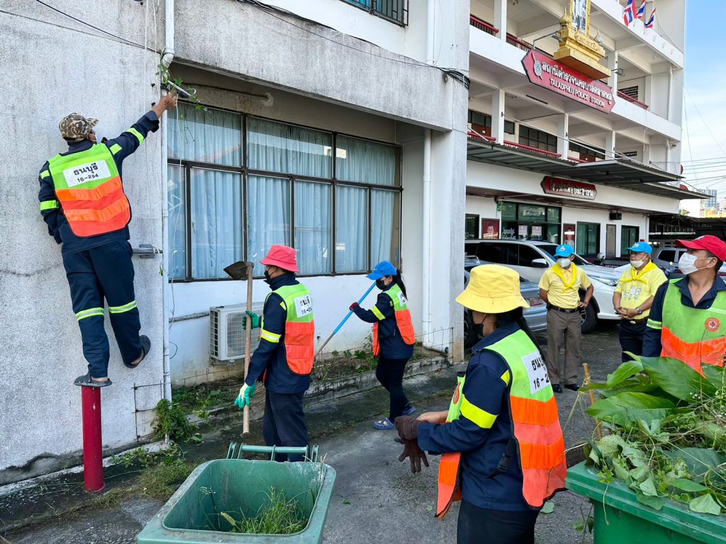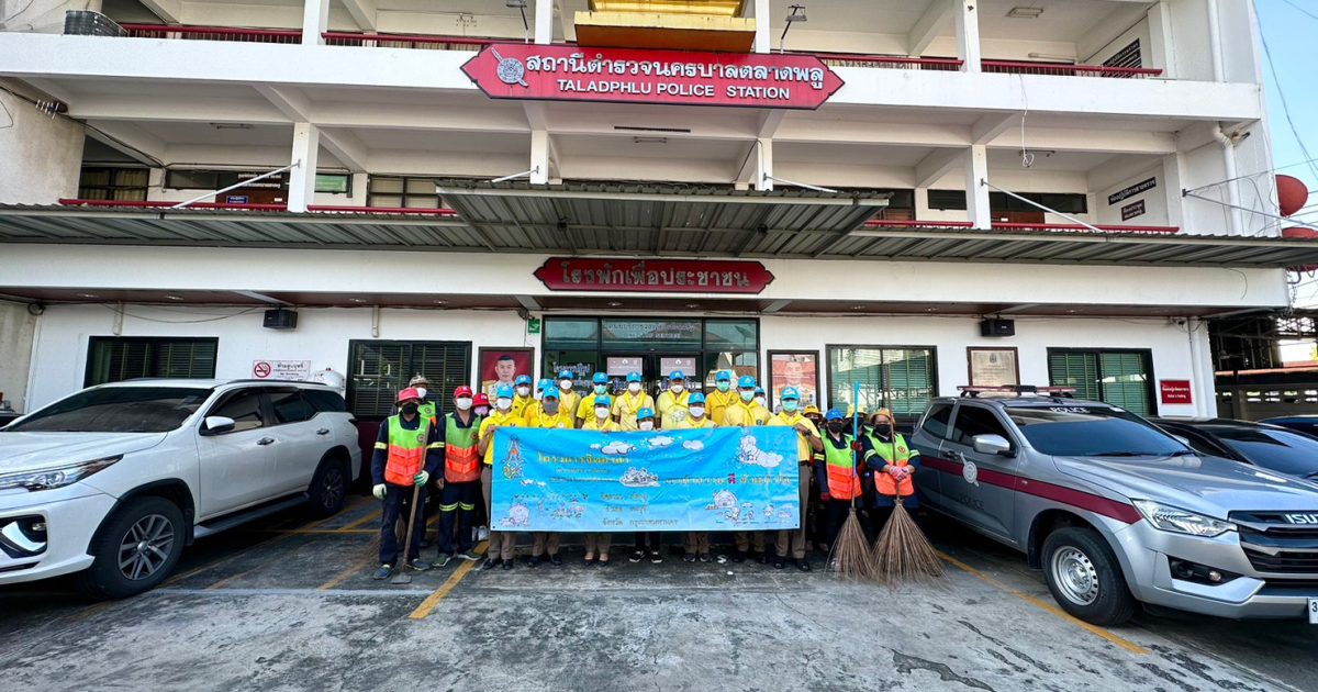 วันนี้(17 ต.ค. 65) เวลา 10.00 น. พ.ต.อ.ธนา มะลิงาม ผกก.สน.ตลาดพลู พ.ต.ท.เตือน สอดส่อง รองผกก.ป.สน.ตลาดพลู พ.ต.ท.ฐิติวัฒน์ บุญภา สว.อก.สน.ตลาดพลู พ.ต.ท.สมพงษ์ สิงห์เรือง สวป.สน.ตลาดพลู พ.ต.ท.เรวัตร์ จันทร์ศิริ สว.จร.สน.ตลาดพลู คุณพิสัณฑ์ ชุ่มวิจิตร ประธาน กต.ตร.สน.ตลาดพลู พร้อมเจ้าหน้าที่ตำรวจจิตอาสา (Local Cat) สน.ตลาดพลู เจ้าหน้าที่ตำรวจจิตอาสา สน.ตลาดพลู เจ้าหน้าที่ตำรวจ ตขส.สน.ตลาดพลู ประชาชนจิตอาสาและเจ้าหน้าที่ฝ่ายรักษาความสะอาดเขตธนบุรี ร่วมจัดกิจกรรม “จิตอาสาพัฒนา เราทำความดีด้วยหัวใจ” ทำความสะอาด ปรับภูมิทัศน์ ตัดหญ้า ตกแต่งกิ่งไม้ เนื่องในวันตำรวจแห่งชาติ (17 ต.ต. 65) บริเวณโดยรอบอาคารที่ทำการ สน.ตลาดพลู แขวงตลาดพลู เขตธนบุรี กรุงเทพมหานคร