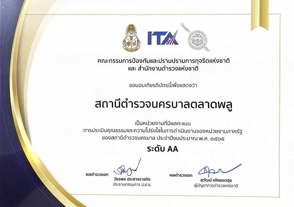 คุณพิสัณฑ์ ชุ่มวิจิตร ประธาน กต.ตร.สน.ตลาดพลู และคณะกรรมการ กต.ตร.สน.ตลาดพลู ได้ร่วมประชุมกับ พ.ต.อ.ธนา มะลิงาม ผกก.สน.ตลาดพลู พร้อมหัวหน้างานทุกสายงาน ซึ่งได้มอบรางวัลการประเมินคุณธรรมและความโปร่งใสในการดำเนินงานของหน่วยงานภาครัฐ (Integrity & Transparency Assessment : ITA) ของสถานีตำรวจนครบาล ประจำปีงบประมาณ พ.ศ.2565 ซึ่งได้คะแนนระดับ AA และตรวจสอบการดำเนินงานให้เป็นไปด้วยความโปร่งใส ให้ข้าราชการตำรวจในสังกัดปฏิบัติหน้าที่ได้เต็มประสิทธิภาพ ไม่ให้เกิดการทุจริตในการปฏิบัติหน้าที่ และมอบเสื้อเกาะ เสื้อสะท่อนแสงแก่สายงานปราบปรามและงานสืบสวน ให้แก่ สน.ตลาดพลู เพื่อใช้ในการปฏิบัติหน้าที่ต่อไป