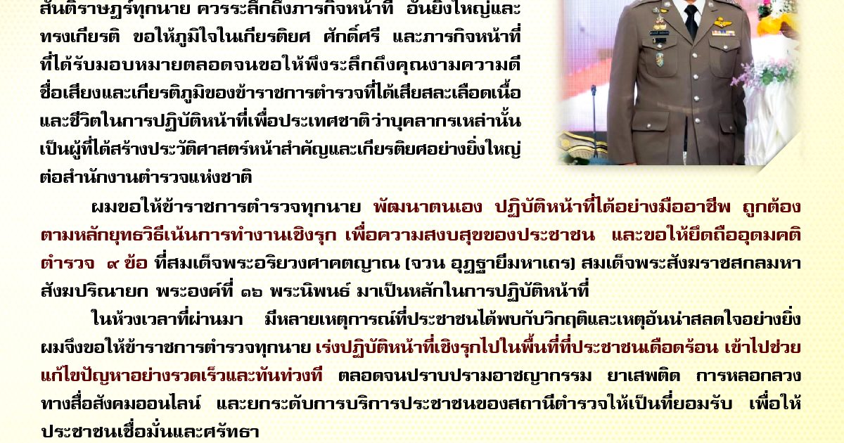 สารจากผู้บัญชาการตำรวจแห่งชาติ เนื่องในวันตำรวจ ประจำปี 2565