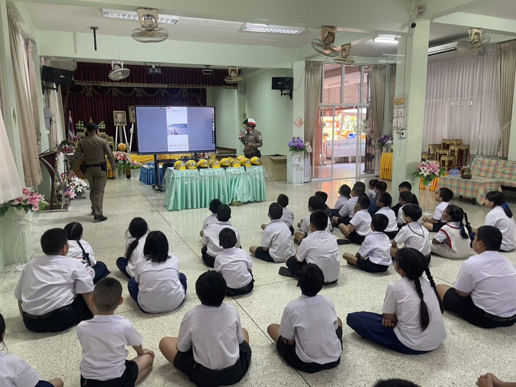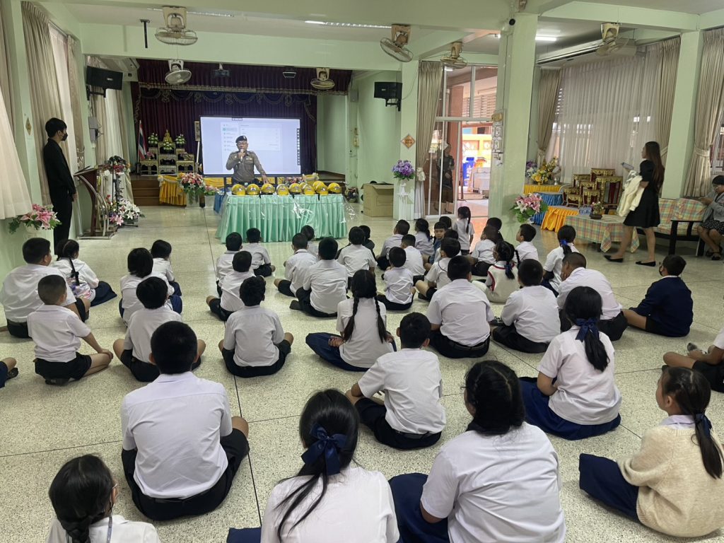 (13 ม.ค.69) เจ้าหน้าที่ตำรวจจราจร อบรม ให้ความรู้เกี่ยวกับกฏหมายจราจรและความปลอดภัยการใช้ถนนและแจกหมวกนิรภัยแก่เด็กนักเรียนโรงเรียนวัดขุนจันทร์ แขวงตลาดพลู เขตธนบุรี กรุงเทพมหานคร