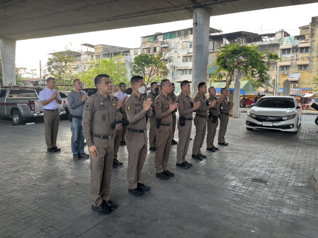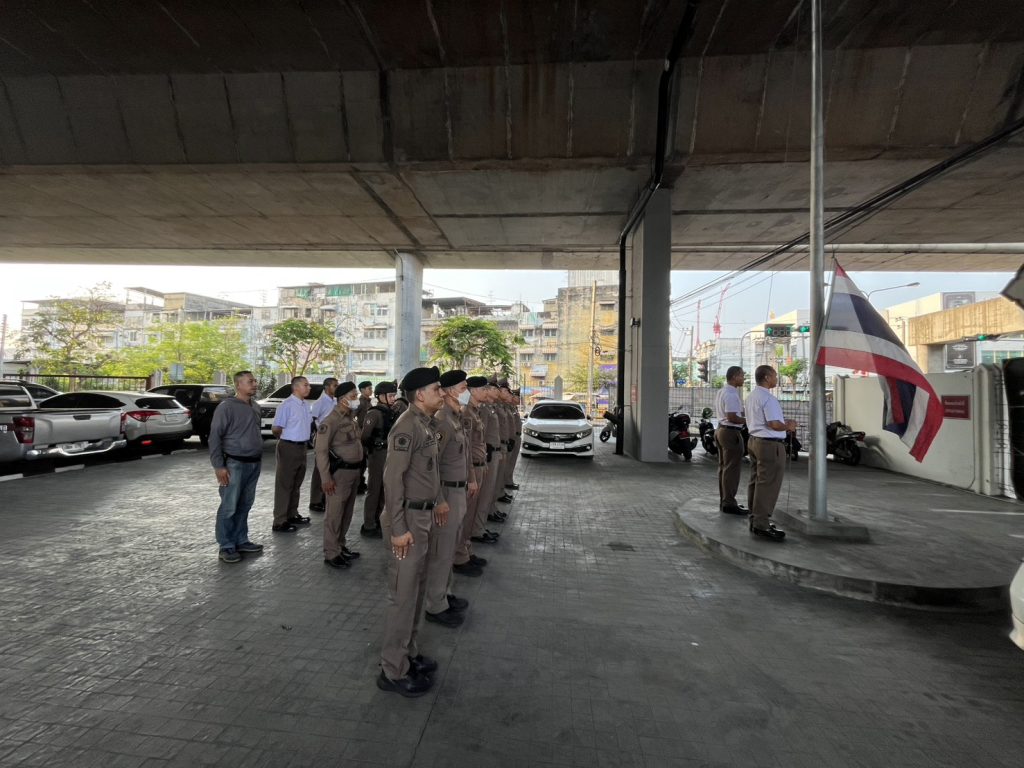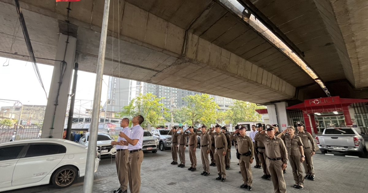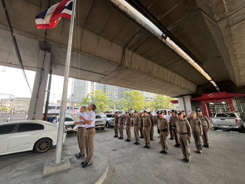 (16 ก.พ.69) ตลาดพลู 1 พร้อมข้าราชการตำรวจ ร่วมกิจกรรมเคารพธงชาติ สวดมนต์ไหว้พระ กล่าวอุดมคติตำรวจ ณ บริเวณหน้าอาคารที่ทำการ สน.ตลาดพลู