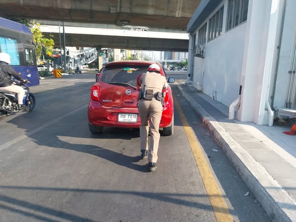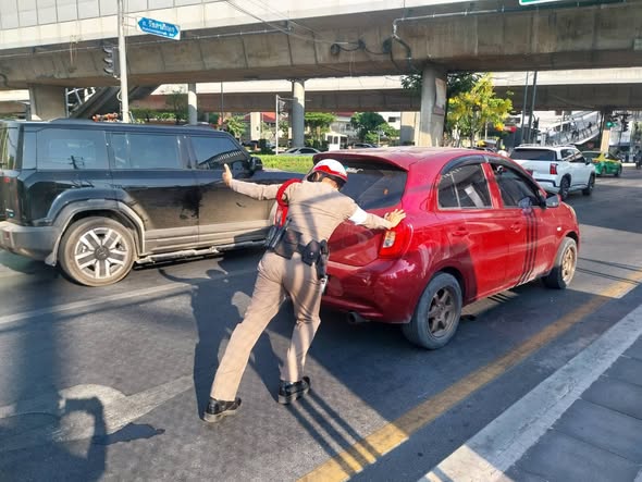 (16 เม.ย.69) เจ้าหน้าที่ตำรวจจราจร สน.ตลาดพลู ช่วยเหลือรถยนต์น้ำมันหมด พ้นการกีดขวางการจราจร บริเวณแยกรัชดาตลาดพลู แขวงตลาดพลู เขตธนบุรี กรุงเทพมหานคร