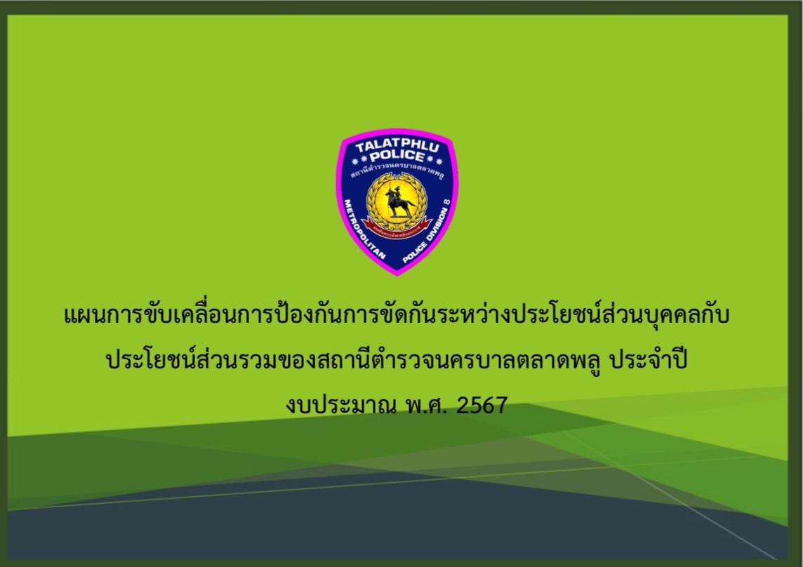(20 มี.ค.67) แผนการขับเคลื่อนการป้องกันการขัดกันระหว่างประโยชน์ส่วนบุคคลกับประโยชน์ส่วนรวมของสถานีตำรวจนครบาลตลาดพลู ประจำปีงบประมาณ พ.ศ. 2567