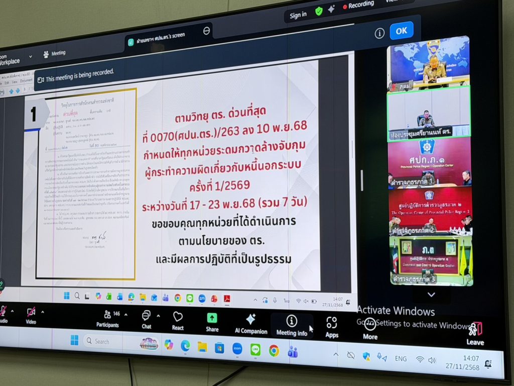 (27 พ.ย.68) เฝ้าฟังการประชุมขับเคลื่อน ศปน. ผ่านระบบ zoom meeting ณ ห้องประชุม ศปก.สน.ตลาดพลู