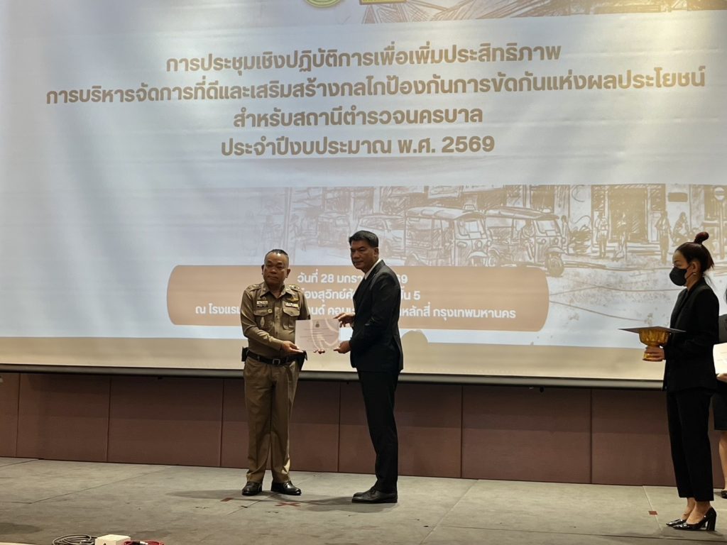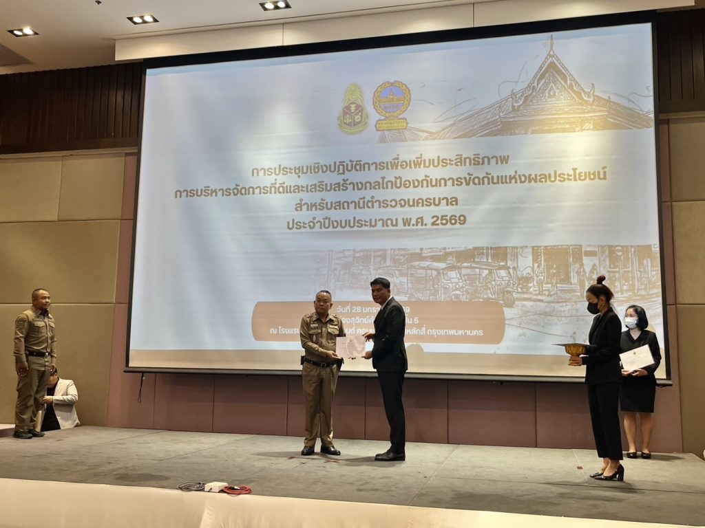 (28 ม.ค.69) ประชุมเชิงปฏิบัติการเพื่อเพิ่มประสิทธิภาพการบริหารจัดการที่ดีและเสริมสร้างกลไกป้องกันการขัดกันแห่งผลประโยชน์สำหรับสถานีตำรวจนครบาล ประจำปีงบประมาณ พ.ศ.2569 และพิธีมอบเกียรติบัตรสถานีตำรวจนครบาลที่มีผลการขับเคลื่อนการป้องกันการขัดกันระหว่างประโยชน์ส่วนบุคคลกับประโยชน์ส่วนรวม ประจำปีงบประมาณ พ.ศ.2568 ในระดับ “มาก“ ณ ห้องสุวิทย์ศักดานนท์ ชั้น 5 โรงแรมทีเค พาเลซ แอนด์ คอนเวนชั่น เขตหลักสี่ กรุงเทพมหานคร