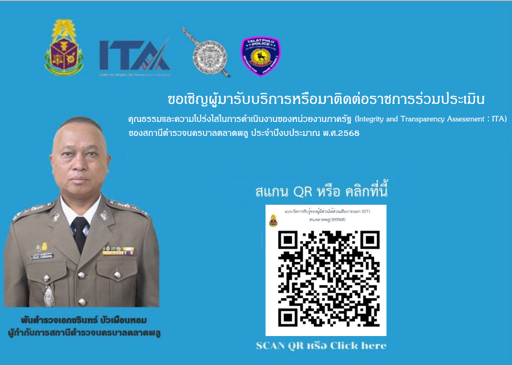 ประชาสัมพันธ์ข้อมูลการประเมินคุณธรรมและความโปร่งใสในการดำเนินงานของหน่วยงานภาครัฐ (Integrity and Transparency Assessment: ITA) ของสถานีตำรวจ ประจำปีงบประมาณ พ.ศ. 2568